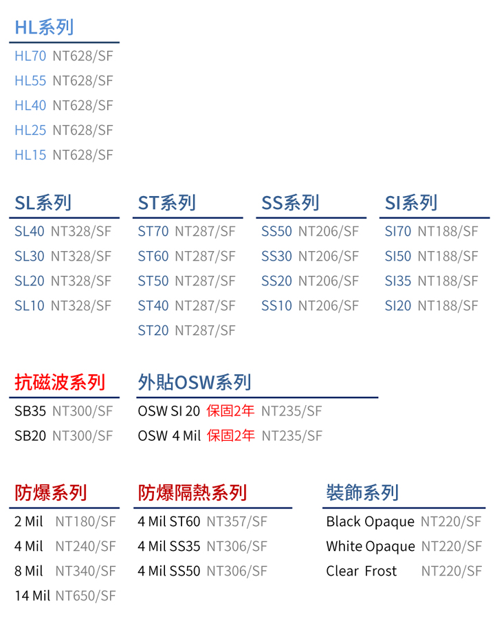 隱形防護系列在任何地方都提供給您最安全的守護,無色透明、抗衝擊強,可將普通玻璃提升為防爆玻璃,達到國際GB99621999要求。安全膜採用耐候性黏膠,利用X、Y雙軸延伸PET膜特性,能有效提升撕裂力與拉扯力係數